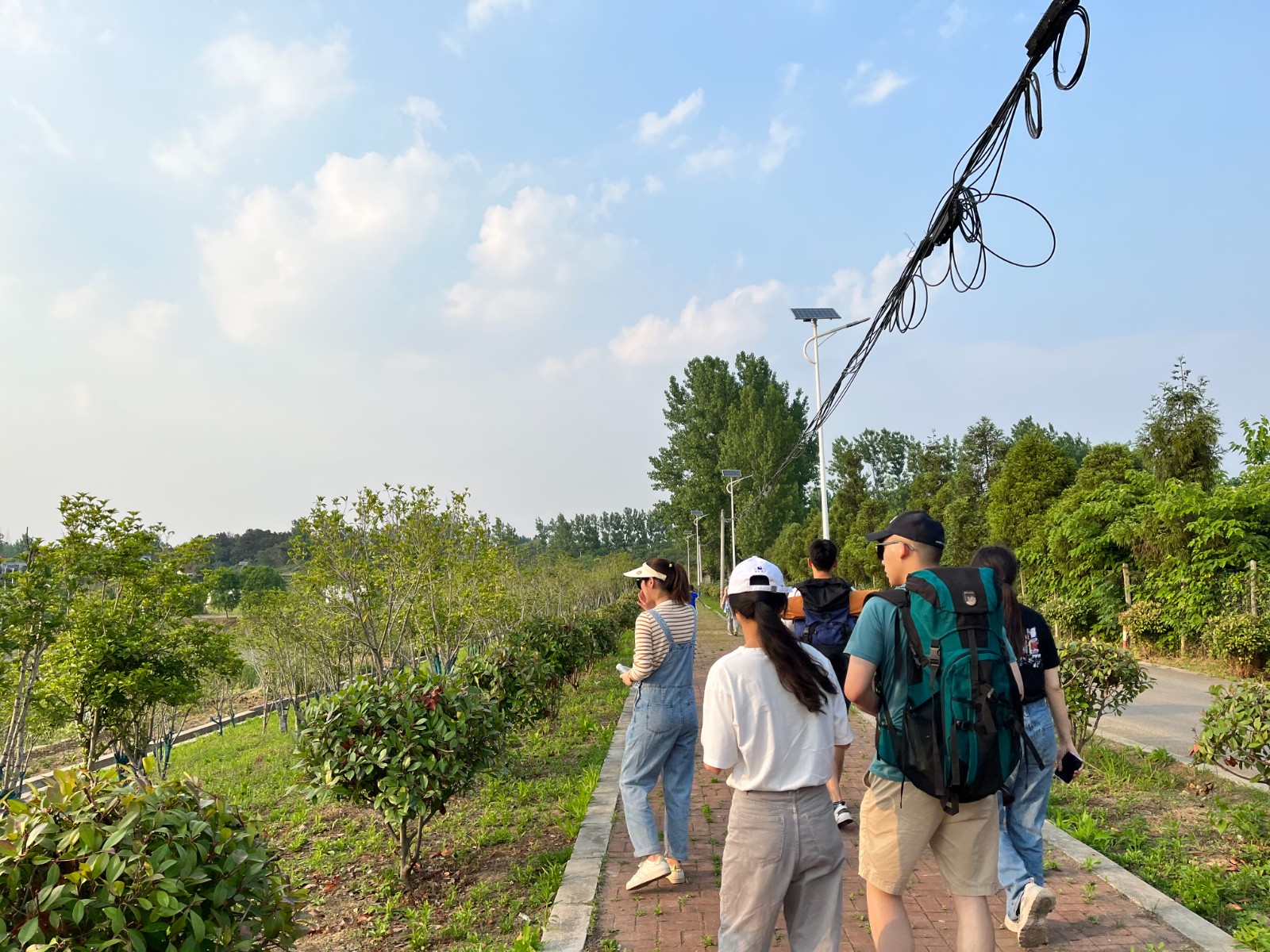 “小满麦渐黄,夏至稻花香”。出行当天刚好遇见了二十四节气中的小满。南外仙林分校华侨城中学青年团员教师们迎着阳光,迈着矫健的步伐从银杏湖大道出发,沿着石塘李路和双石路,穿过新塘一直向北,从宽阔的公路走到村寨里的羊肠小道,又行至开阔的水塘和树木丛生的林荫小道,全程5.4公里,一步一景,风景宜人。沿途经过小麦等农作物,看见了刚挂枝颗颗饱满的桑葚,不禁让人想起欧阳修的“麦穗初齐稚子娇,桑叶正肥蚕食饱”的诗句,似乎每一颗麦粒都在酝酿着下一场丰收。大家在感受祖国青山绿水的乡野生态气息的同时,也不禁感叹社会主义新农村建设的丰硕成果。即使负重前行,团员教师们依然精神抖擞,活力满满,秉承着共青团员不怕吃苦的革命精神,准时到达了营地。