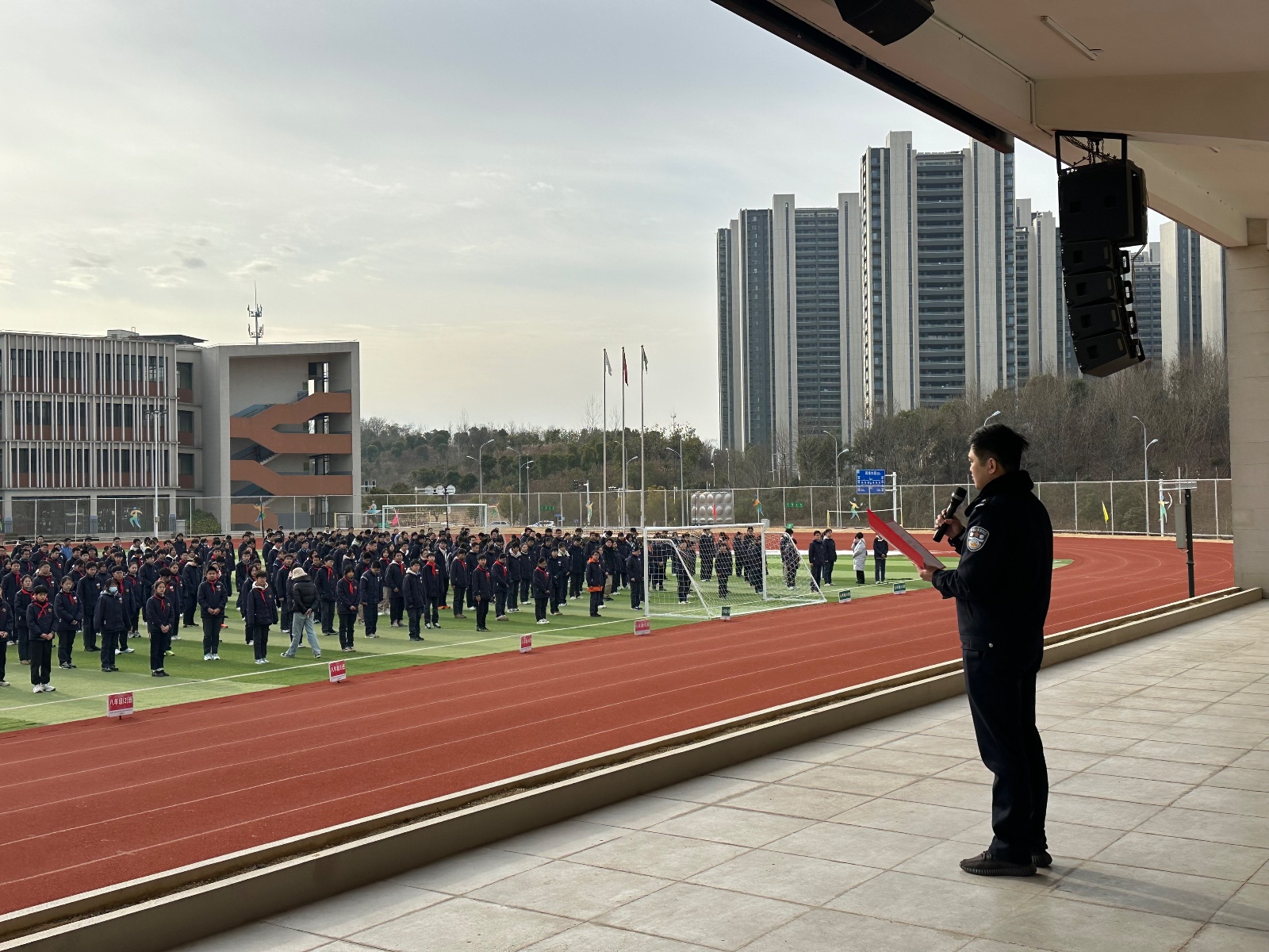 为增强青少年法制观念,让法治在校园落地生根,2025年2月17日,南京仙林外国语学校华侨城中学法治副校长——栖霞区派出所徐振珲警官在晨会上进行了一场意义非凡的校园法治安全主题讲话。新学期伊始,徐警官提醒同学们在校园生活中需要遵守校规校纪,不做违法的事情,如:独自骑电动车上路、校园霸凌等行为。筑牢法治的防线,时刻谨记在校园内外的行为与边界,注意知法、懂法、守法。