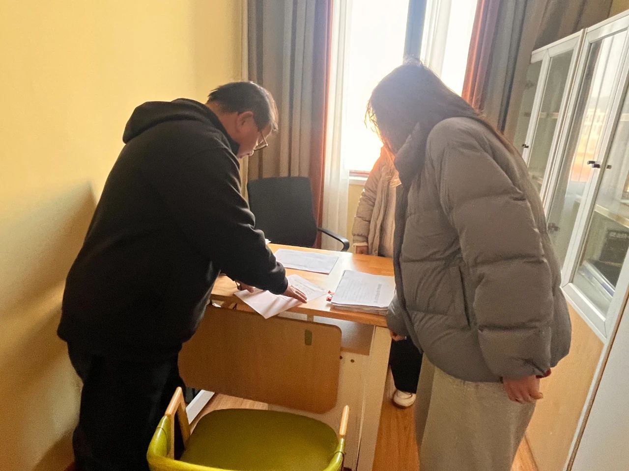 印督学与德育处主任戴峥臻进行了访谈,详细查看了德育工作台账。德育主任汇报了近期“暖冬送福—经济困难家庭入户家访”、“我们的节日——春节手工作品展”、文明餐桌评比、班级迎新板报评比等活动。印督学对德育工作的全面性表示赞赏,并特别提到板报布置要注重吸引学生的注意力,营造良好的校园文化氛围。