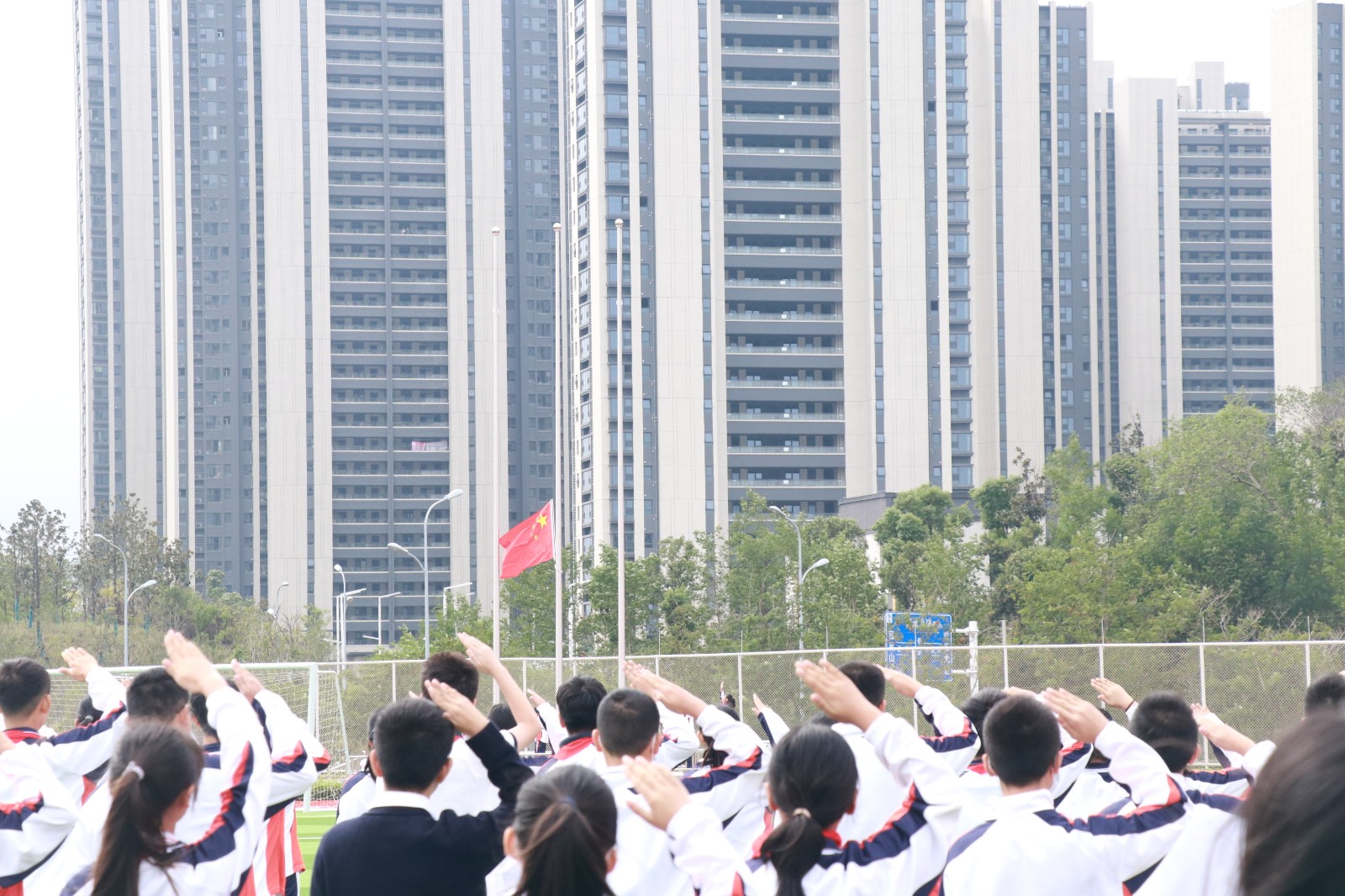 现在,本次晨会的升旗仪式 现在开始 全体同学向左转。