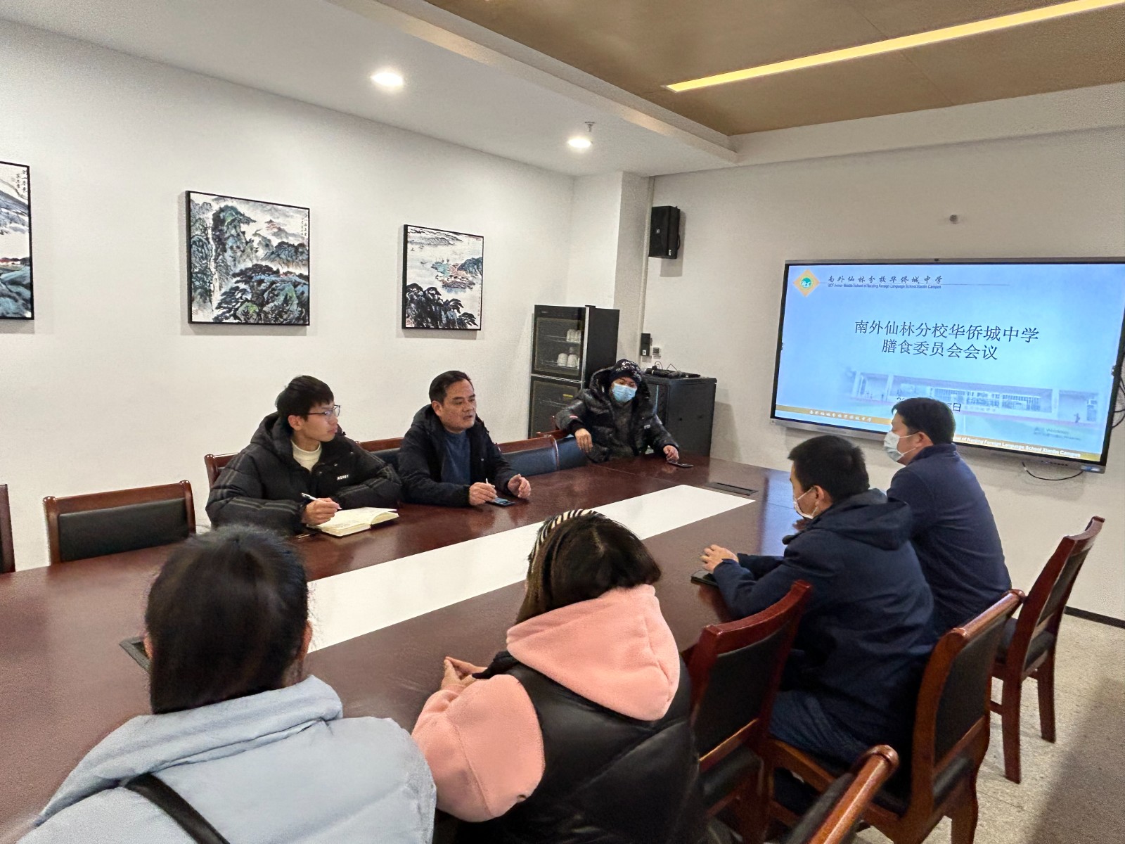为加强学校与家庭在学生教育工作中的沟通与配合,充分发挥家长委员会的作用,2023年2月17日下午,南外仙林分校华侨城中学在行政楼二楼会议室召开了2022-2023学年度第二学期膳食委员会工作会议。周大华副校长、总务处施必冬老师及膳食委员会(部分)家长出席了会议。本次会议由总务处施必冬老师主持。