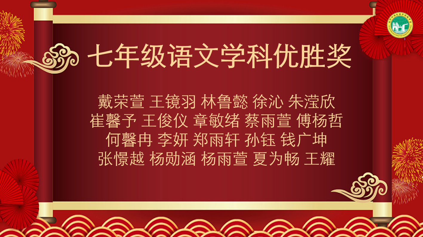 七年级语文学科优胜奖名单